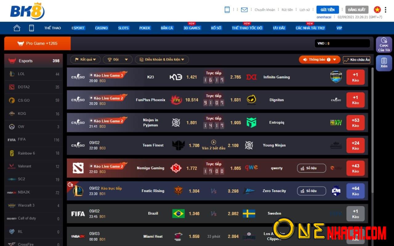 Xếp hạng nhà cái BK8 tại OneNhaCai.Com